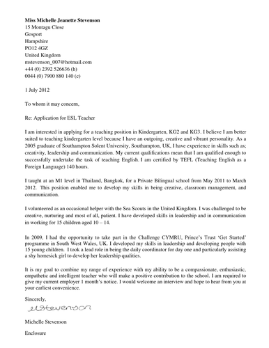 Cover Letter for Teaching Job Without Experience ... from documentshub.com In a letter, unbroken paragraphs can look like the ramblings of a manifesto. Esl teacher cover letter sample cover letter sample a.k.a. Kindergarten teacher cover letter no experience. Attach a cover letter to your new teacher resume. The three basic elements of your cover letter. At the top of your resume, list your first and last name, followed by your contact information. Mehr motivation & bessere noten für ihr kind dank lustiger lernvideos & übungen. So, if you're a fluent english speaker looking to make extra income or get teaching experience, becoming an online esl teacher could be the perfect gig for you!